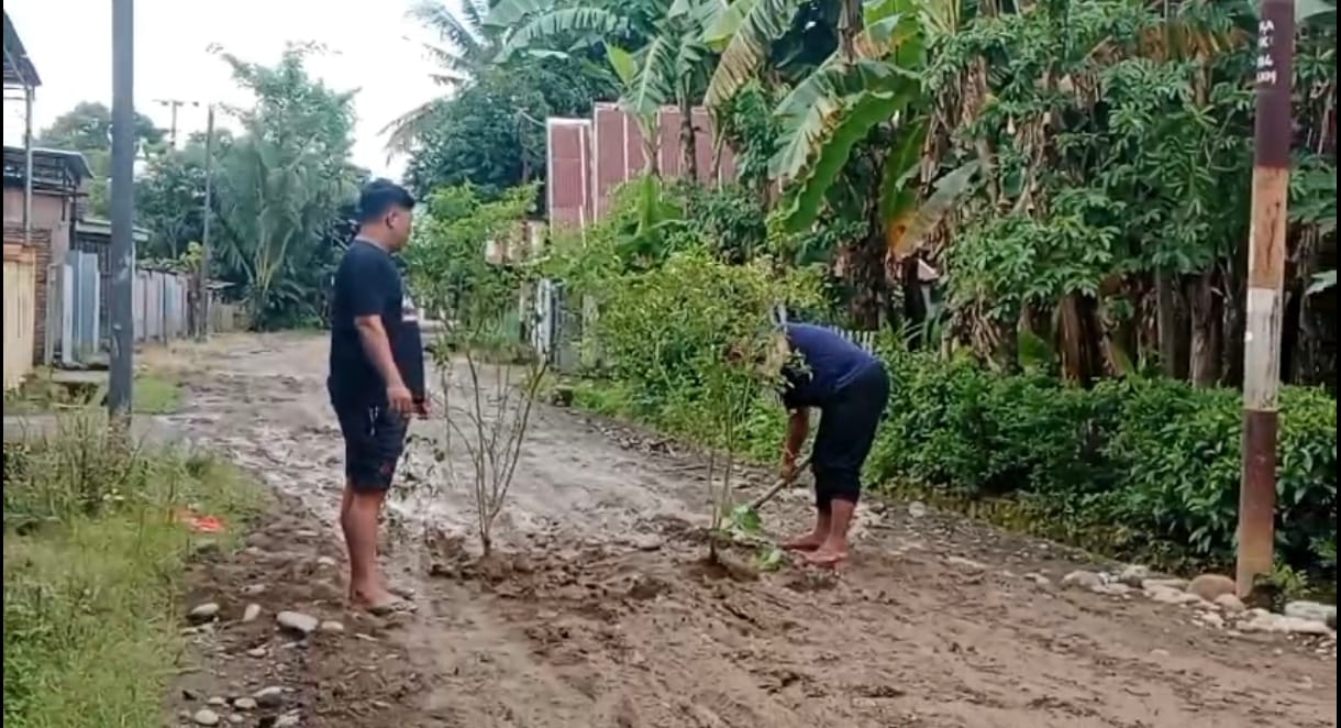 Moldy dan Yusri, dua warga setempat, nekat melakukan aksi itu setelah setiap hari harus melintasi jalan berlubang yang kini tak ubahnya kubangan lumpur. Bagi mereka, aksi ini bukan sekadar ekspresi kekecewaan, tetapi jeritan warga yang sudah terlalu lama diabaikan.