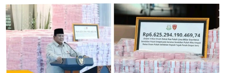 langsung penyerahan keuangan negara sebesar Rp6,6 triliun kepada pemerintah. Prabowo subianto mengatakan Ini adalah hak rakyat yang berhasil kita selamatkan.di lansir dari lamanChibernews.co.id, pada jum’at ; 26/12/2025.