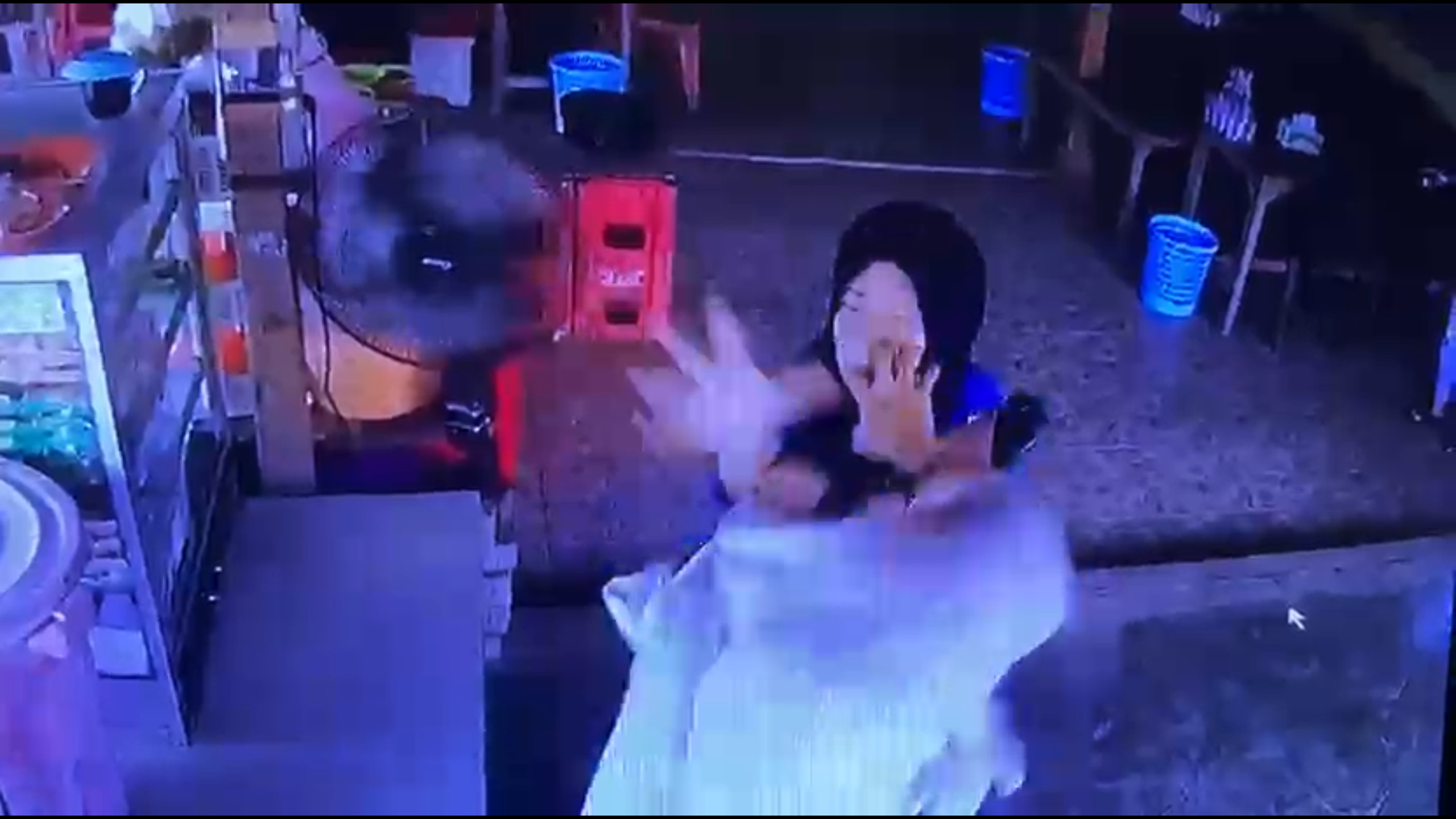 Karena pemilik kios tidak dapat dihubungi, salah satu terduga kemudian berdiri di depan laci kasir dan membukanya. Korban sempat menutup kembali laci tersebut.