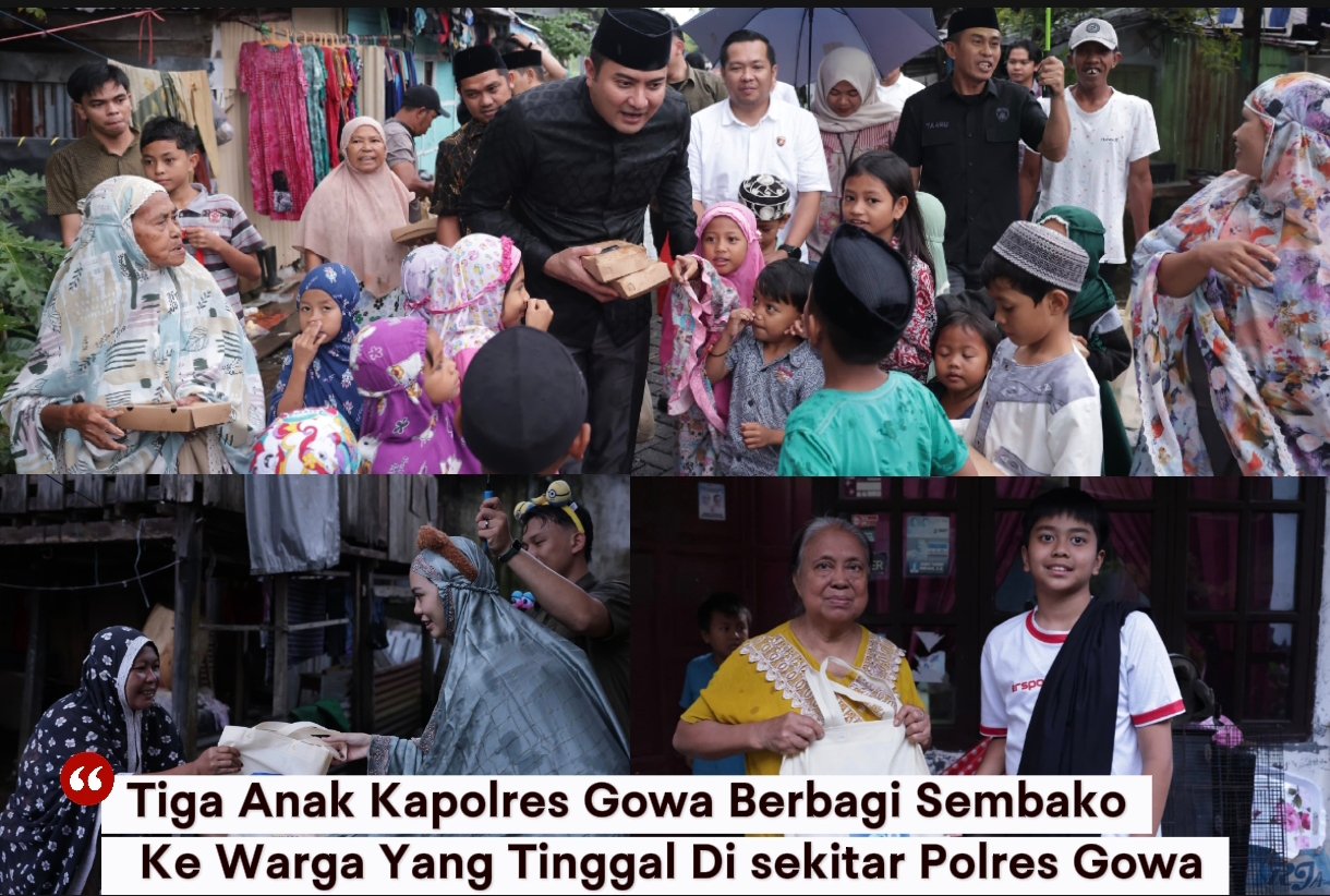 MAKASSARGLOBAL.COM, GOWA – Di tengah suasana Ramadan yang penuh keteduhan dan Keberkahan ini, langkah-langkah kecil terlihat menyusuri lorong di sekitar Mapolres Gowa, Tanpa jarak dan tanpa keramaian berlebihan, tiga anak Kapolres Gowa bersama satu keponakannya membagikan ratusan paket sembako langsung ke rumah-rumah warga. Jum’at (27/2/2026)