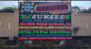 bukti nyata Nampak satu karangan bunga yang berdiri sangat kokoh sabagai ucapan selamat datang di Mako polsek bajeng.